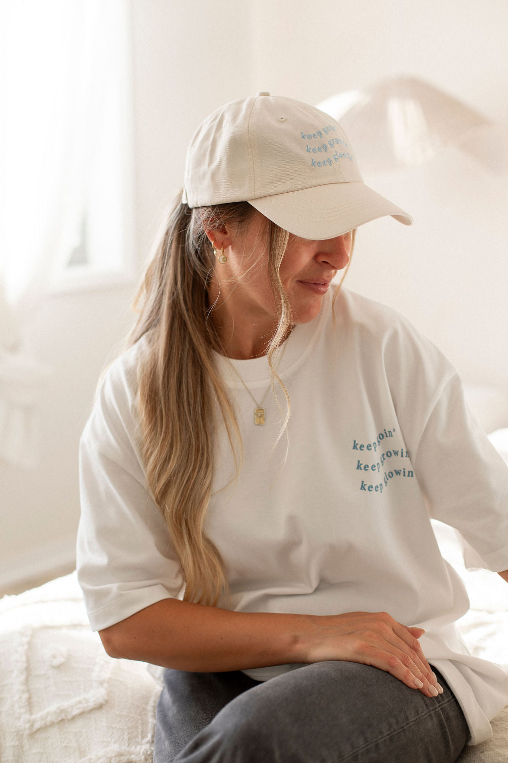 For every busy mama, a reliable cap is more than just an accessory; it's a staple of the uniform, an essential companion for those on-the-go days. That's why we're proud to present the Keep Glowin' Adult Cap in timeless beige – the perfect blend of functionality and style.